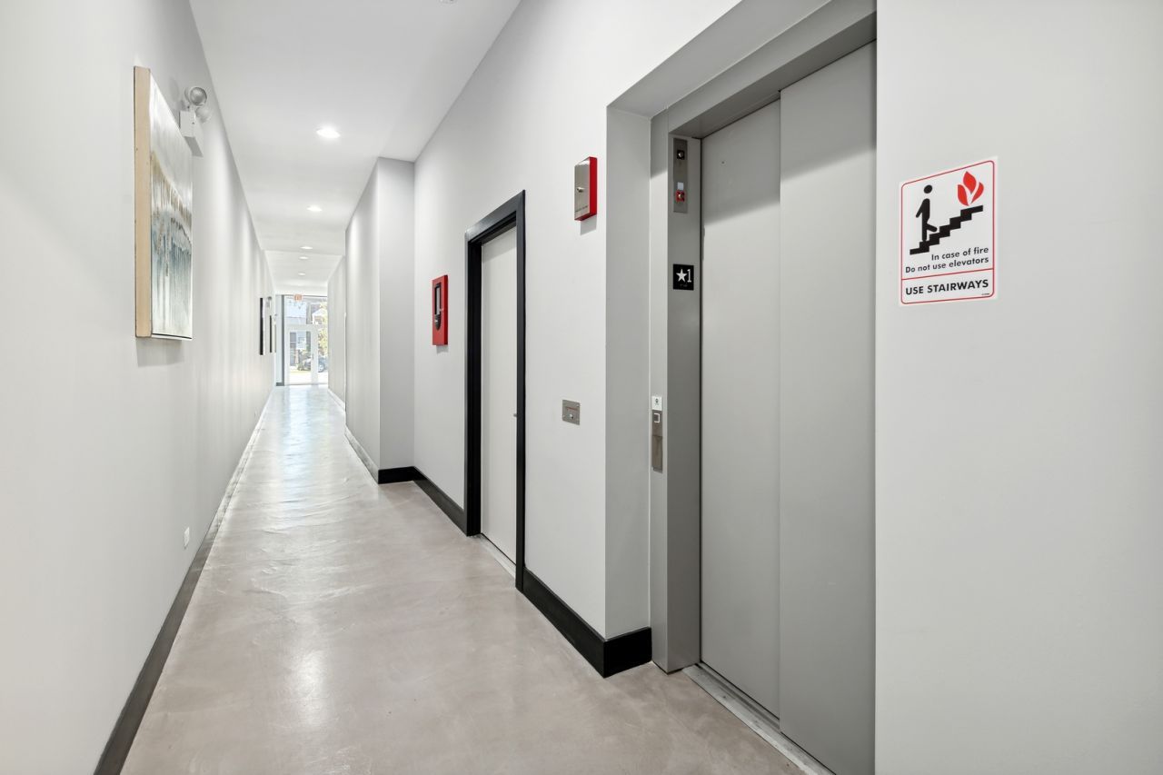 Fortress Homes presents this rare opportunity in a 31-unit boutique elevator building, offering sophisticated urban living with a thoughtfully designed open-concept floor plan. The sleek gourmet kitchen features custom two-tone cabinetry, quartz countertops, stainless steel appliances, and a massive peninsula with a dramatic waterfall edge that seamlessly flows into the bright, open living area. Floor-to-ceiling European windows flood the space with natural light and frame stunning panoramic city views from this south/north corner unit. A private balcony off the living room and two bay windows complete the impressive outlook. The spacious primary suite includes two large windows, a generous closet, and a spa-inspired ensuite bathroom with a walk-in shower, designer tile, and a custom floating vanity. The second bedroom offers a large window and ample closet space, while the guest bathroom features a soaking tub/shower combination and a matching custom floating vanity. Additional highlights include an in-unit washer/dryer and access to a private assigned rooftop deck with sweeping city views. A heated garage parking space is included in the price. The building is fully completed and move-in ready. Photos shown are of the staged Unit 506. Conveniently situated near the West Loop, Little Italy, United Center, and Medical District. Easy access to the Eisenhower Expressway (I-290), the Blue Line El train, Western Avenue Metra station (MD-N, MD-W, & NCS), and multiple CTA bus routes.