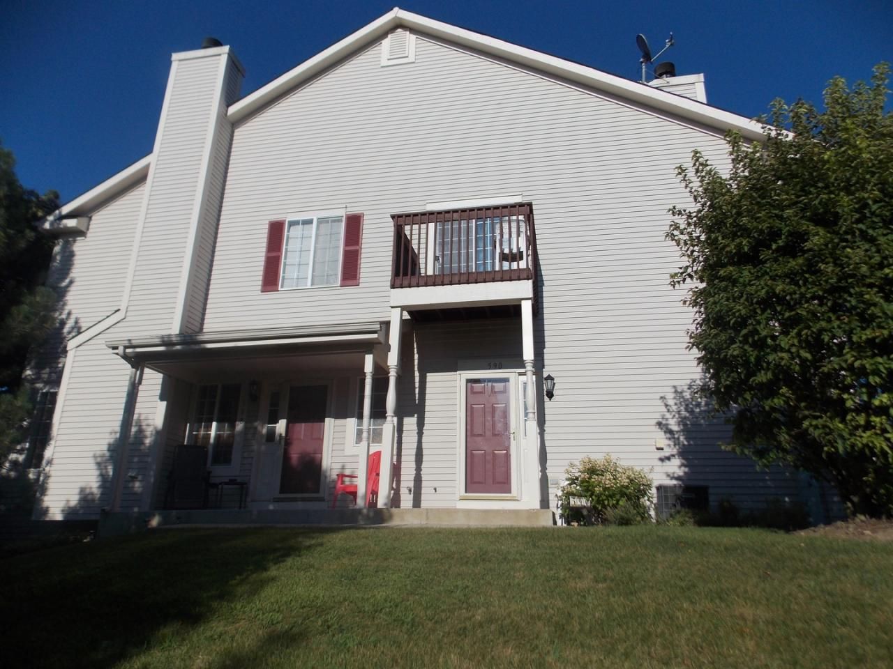 Spacious one level second floor town home with an attached garage! Vaulted living room with fireplace adjacent to a stainless eat in kitchen with breakfast bar and hardwood flooring. Two nice sized bedrooms and full bathroom. Nothing but nature and green space in the front yard! September 1st occupancy! Credit and background is required.